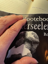 Ich nehme an, dass Nooteboom mehr als einmal die Berlinale besucht hat und wenn auch nur, um zu beobachten, zu sehen. Ich recherchiere nach Belegen und finde etwas anderes: der Publizist Roland H. Wiegenstein schreibt über Nootebooms Technik in Allerseelen: „Er montiert Großaufnahmen und Halbtotalen in die Totalen. Ein Kameramann, der statt mit Objektiven und Filmen mit Worten arbeitet.“ Sicher werde ich in den kommenden Kinosesseln oft an dieses Zitat denken. Aber jetzt ziehe ich erst einmal mein Exemplar aus einem hochgestapelten Bücherturm, blättere und skippe zur letzten Seite. Da sind sie, drei kleine Muster, die aussehen wie zarte Abdrücke im Schnee. Und dann die allerletzte Zeile, der Chor, der den Schlussakkord setzt mit den Worten: „Und wir? Ach wir…“